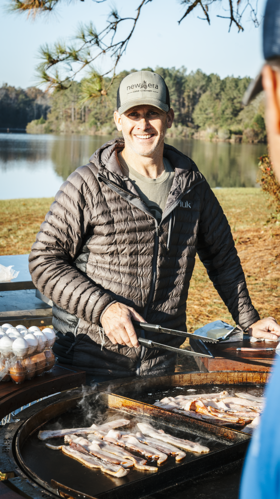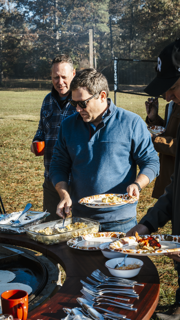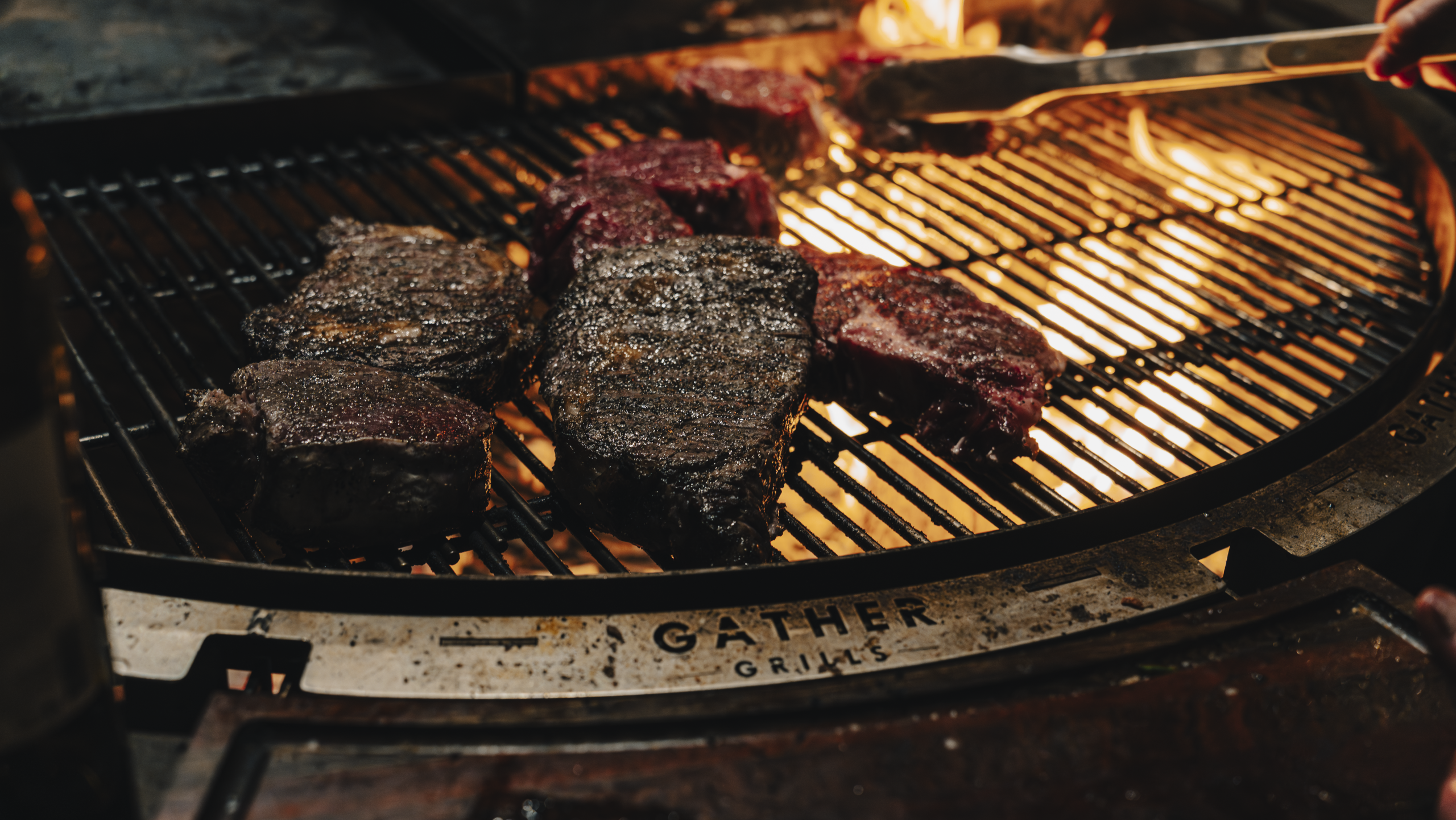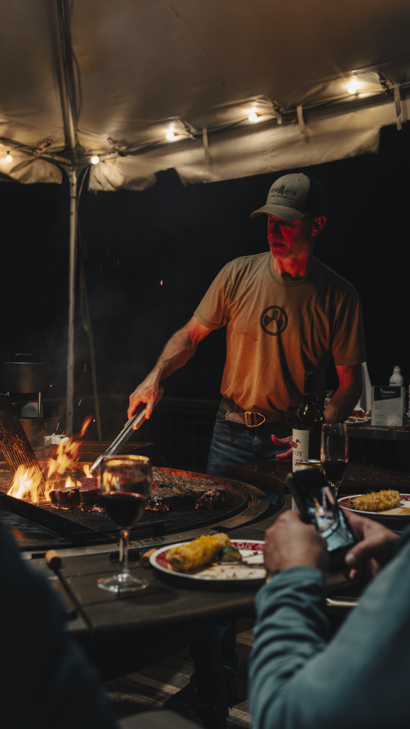 It was a crisp, cool morning out on Strange Farms as we started out the day firing up the Reunion Gather Grill and replacing the grill grates with four interchangeable Griddles to maximize egg and bacon cook time / portions. After which, we set up the outside of the Grill with yogurt, toppings, condiments, and tortillas for the ultimate serve yourself Breakfast Bar only possible on the Gather Grill with the attachable table wings. Man, was it good! (Shoutout to Chef Josh and his crispy egg burrito!)