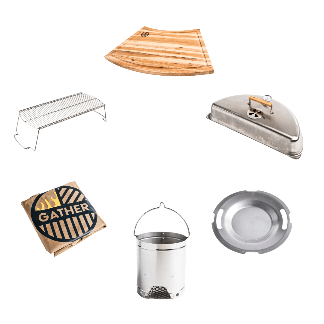 The Pioneer Grill by Gather Grills is the ultimate outdoor cooking experience for grill masters who love to entertain at home. This Grill includes everything you need to be a BBQ master and create meals that are fun and delicious. The Pioneer model is perfect for cooking for six to eight diners, with the ability to grill for a crowd.